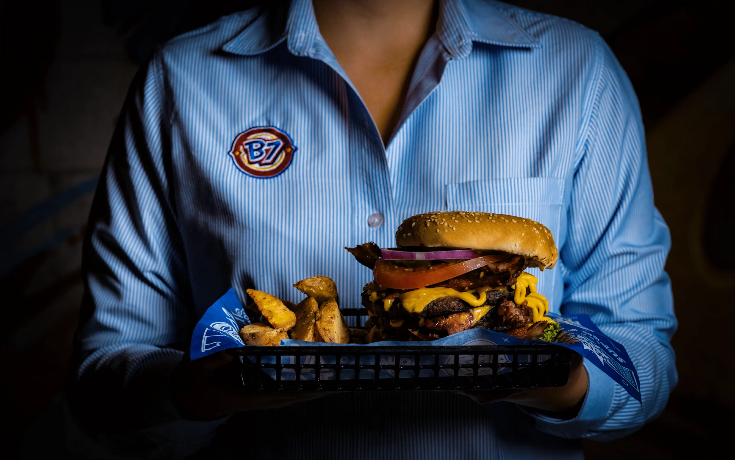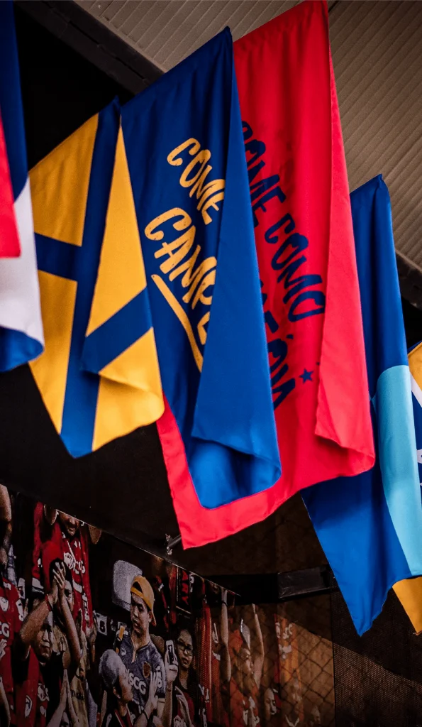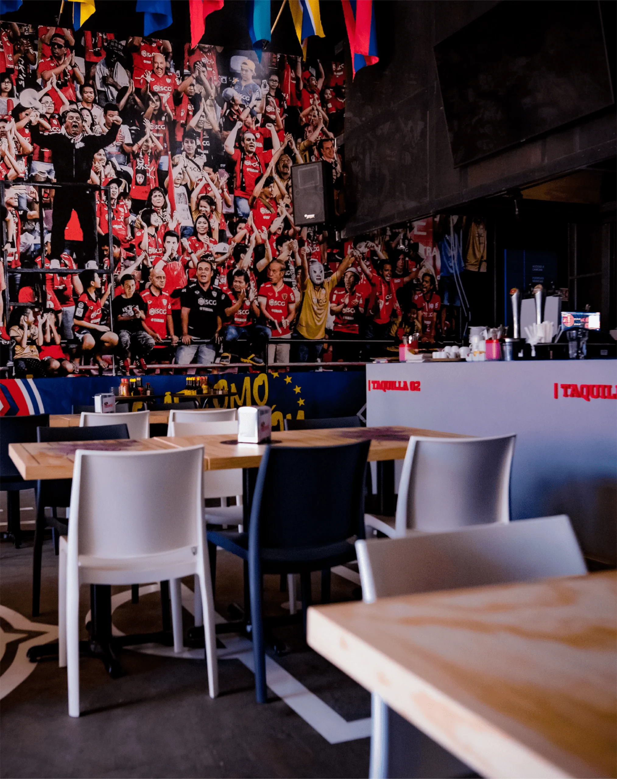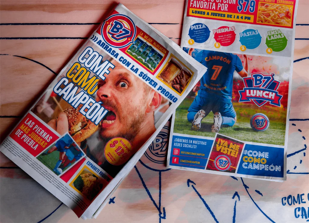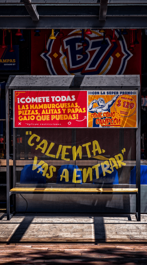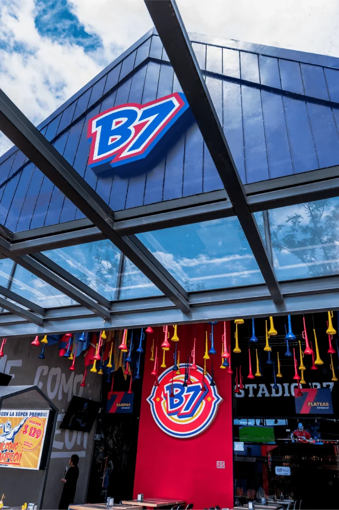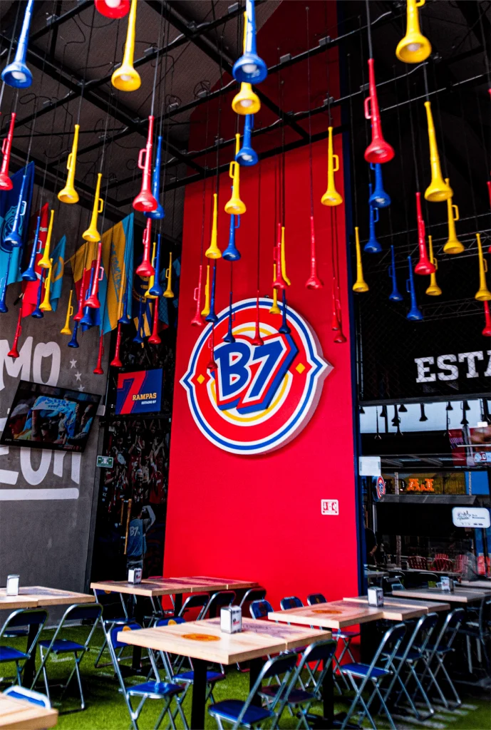 Cada imagen, cada símbolo, está allí para transmitir una experiencia que va más allá de un simple restaurante. B7 no solo te ofrece comida, te sumerge en una atmósfera en constante movimiento, donde los colores y las texturas cuentan historias de victorias, pasiones y leyendas.