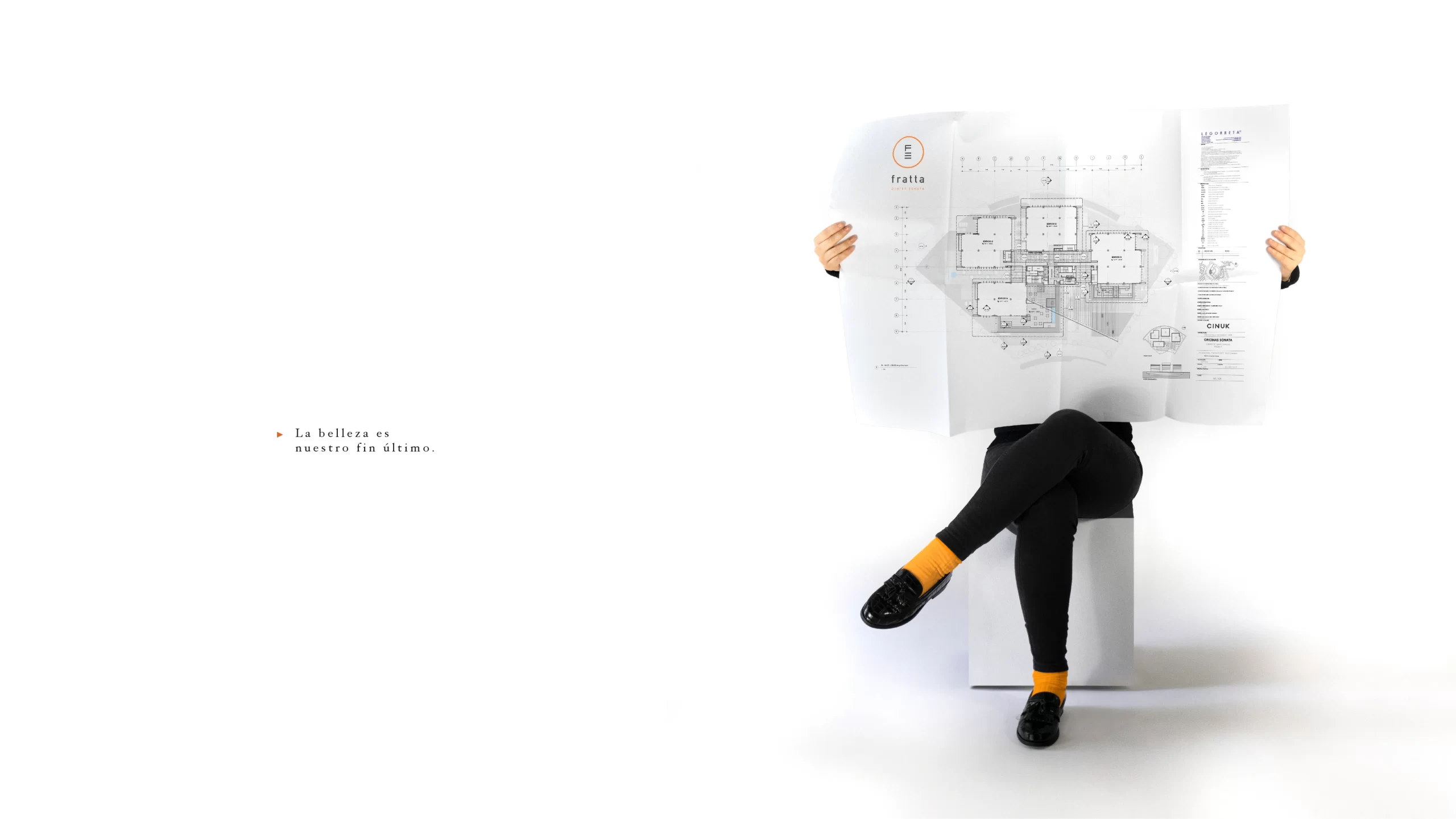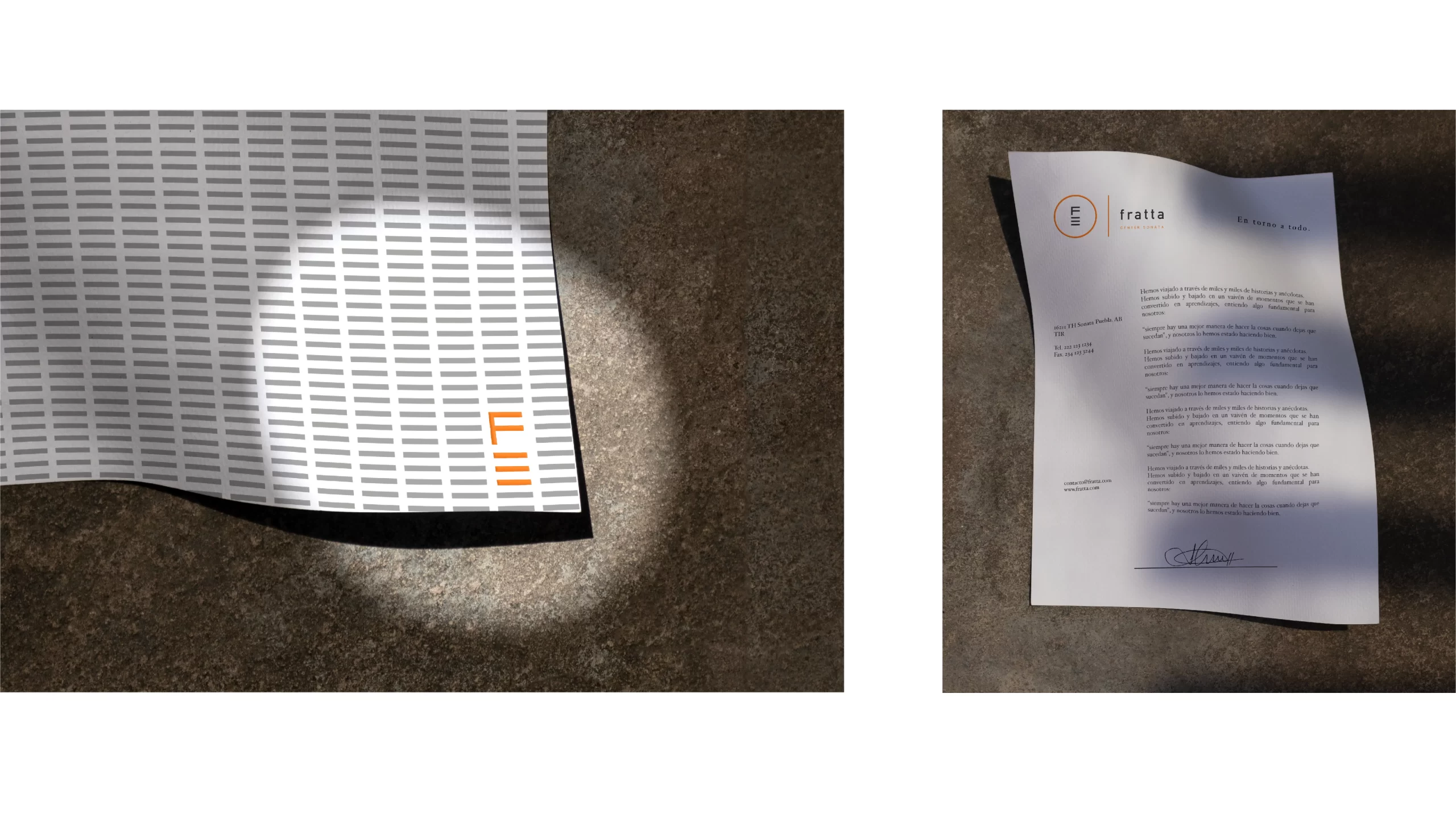 El lenguaje visual de Fratta está pensado para resaltar la esencia de la marca. A través de una paleta neutra combinada con toques de naranja vibrante, se logra transmitir un entorno que respira arte, elegancia y prestigio.