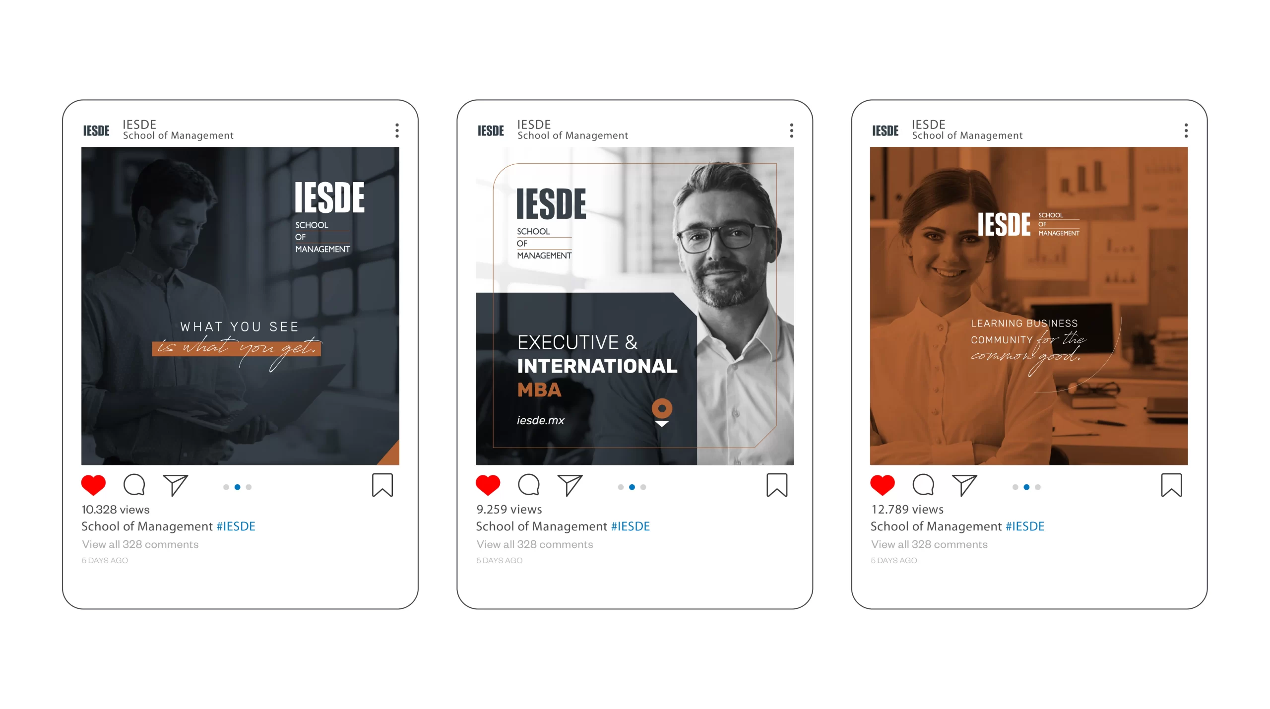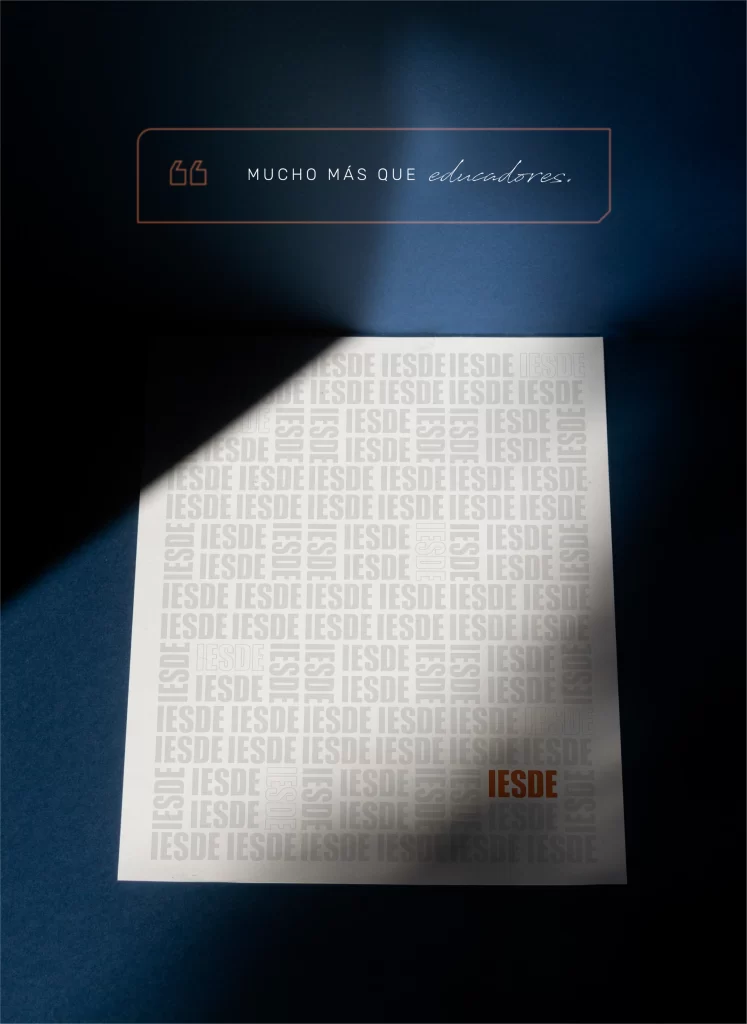 En IESDE, cada elemento visual está diseñado para inspirar. Las líneas, los colores y la tipografía no solo forman un conjunto armónico, sino que cuentan una historia: la de un futuro brillante, lleno de movimiento y posibilidades. Las líneas dentro de la retícula sugieren movimiento y emociones, lo que permite unificar la composición y lograr una apariencia de renovación y diferencia. Los colores suscitan sentimientos de fuerza, energía y determinación, proyectando al mismo tiempo complejidad y modernidad.