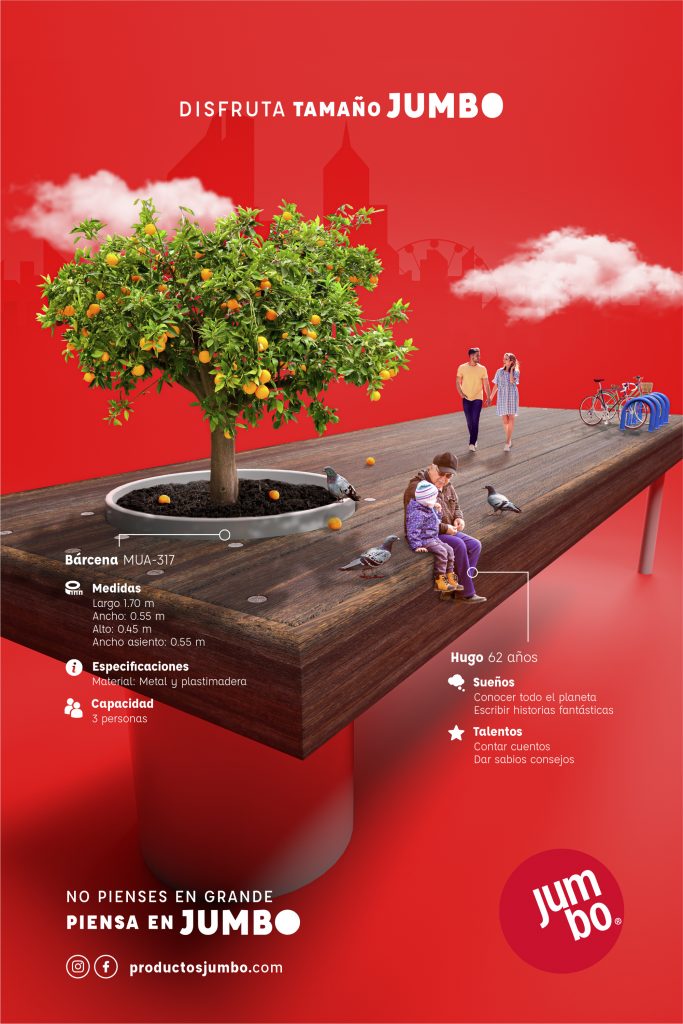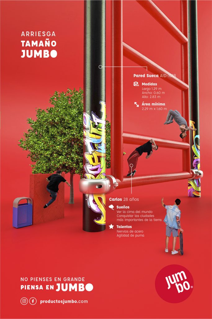 Jumbo es la marca que desafía las expectativas y redefine lo que significa ser grande. Con más de 40 años de experiencia, ha evolucionado para convertirse en un líder en el diseño, fabricación y comercialización de equipamiento urbano y mobiliario inclusivo. Ya no solo son juegos infantiles, Jumbo va más allá, con parques, gimnasios públicos, zonas de aventura y soluciones inclusivas que impactan la vida de las personas.