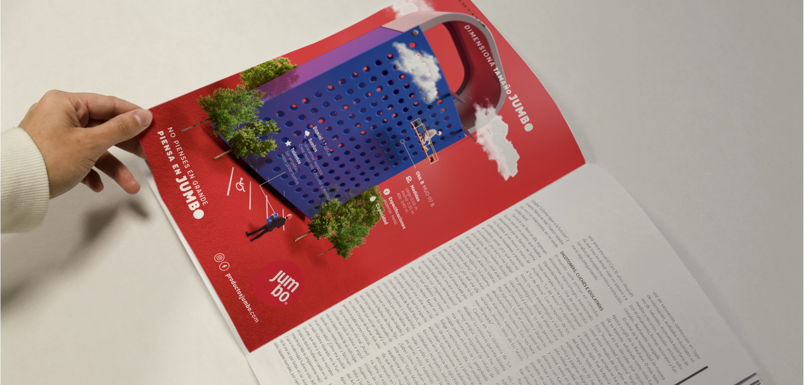 Jumbo no solo es una marca, es un catalizador del cambio. Su esencia radica en transformar ideas en realidades que desafían los límites, donde lo grande es solo el comienzo. Jumbo lleva la imaginación al siguiente nivel, creando espacios que empoderan a las personas y transforman su entorno, creando espacios que:
