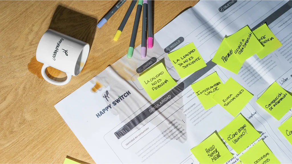 Happy Switch es una metodología creada en Happy Studio para el diseño estratégico de marcas. Más que un conjunto de herramientas, es un interruptor que desbloquea el verdadero potencial de una marca, su mensaje, su esencia y la dirección que debe tomar. Ha sido desarrollada para acompañar a nuestros clientes y tener un entendimiento periférico y detallado de su modelo de negocio hasta la ejecución de una comunicación clara, poderosa y alineada a su crecimiento.